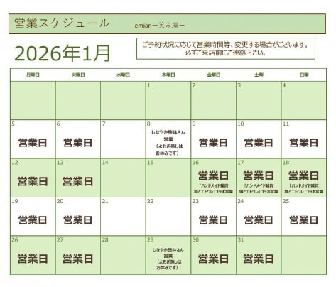 1月営業スケジュールのご案内