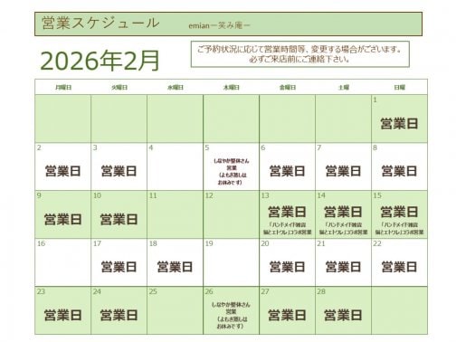 2月営業スケジュールのご案内