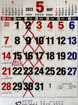 5月営業日、営業時間のご確認は