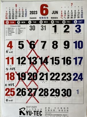 6月営業日、営業時間のご確認は