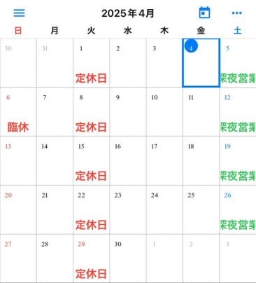 4月営業日のご案内