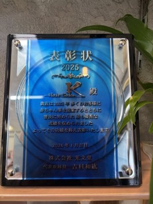 おかげさまで、赤ちゃん筆「光文堂」様より、全国でより多くのご注文をいただいたサロンとして表彰状を頂戴いたしました。