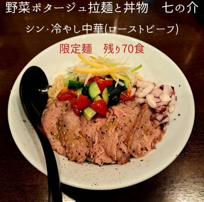 【七の介】限定麺「シン・冷やし中華」ローストビーフが冷やし中華にとっても合います✨ ローストビーフ丼も絶対おいしい✨