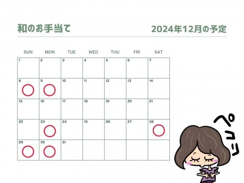 2024年12月の和のお手当ての開催日です。