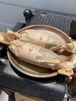 新鮮なとうもろこし、味に自信あり!!なので、タレなどはつけません。尚、今後の出店予定はしばらくありませんので、とうもろこしも芋も今回分しか仕入れしません。冷やし焼き芋はご予約いただけますと確実にお渡しできると思います。ご連絡ください♪