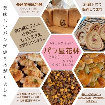 パン屋花林も2F廊下スペースにてからだに優しい手づくりパンを販売いたします!ぜひ遊びに来てください。