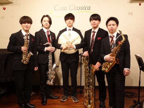 サクソフォーンカルテット SAXERUS の藤田智也さん(ソプラノサックス)小林奏太さん(アルトサックス)小熊勇輝さん(テナーサックス)高橋悠さん(バリトンサックス)、ゲストは藤原颯大さん(ドラム)ご出演、SAXERUS×Drums藤原 -Special Sax Night-でした。