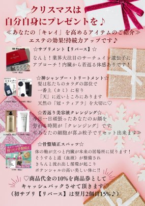 メルマガ登録して頂いた方には 【特典】 初回エステ料金が1,100円引き!+炭酸ケアで頭皮ほぐし (白雪姫♡色白美肌コースはなんと!4,000円引き) あなただけのプライベート空間でフルチャージしてください♡ 京都近郊にお住まいの方・京都に旅行で来られた方も♪ 京都にお越しの際は観光の合間にぜひ♫ 美肌・癒し体験を♡ ☆ベーシックコース6,600円→5,500円 ☆肌再生パーソナルケアコース9,900円→8,800円 ☆白雪姫♡色白美肌コース¥17,500→13,500