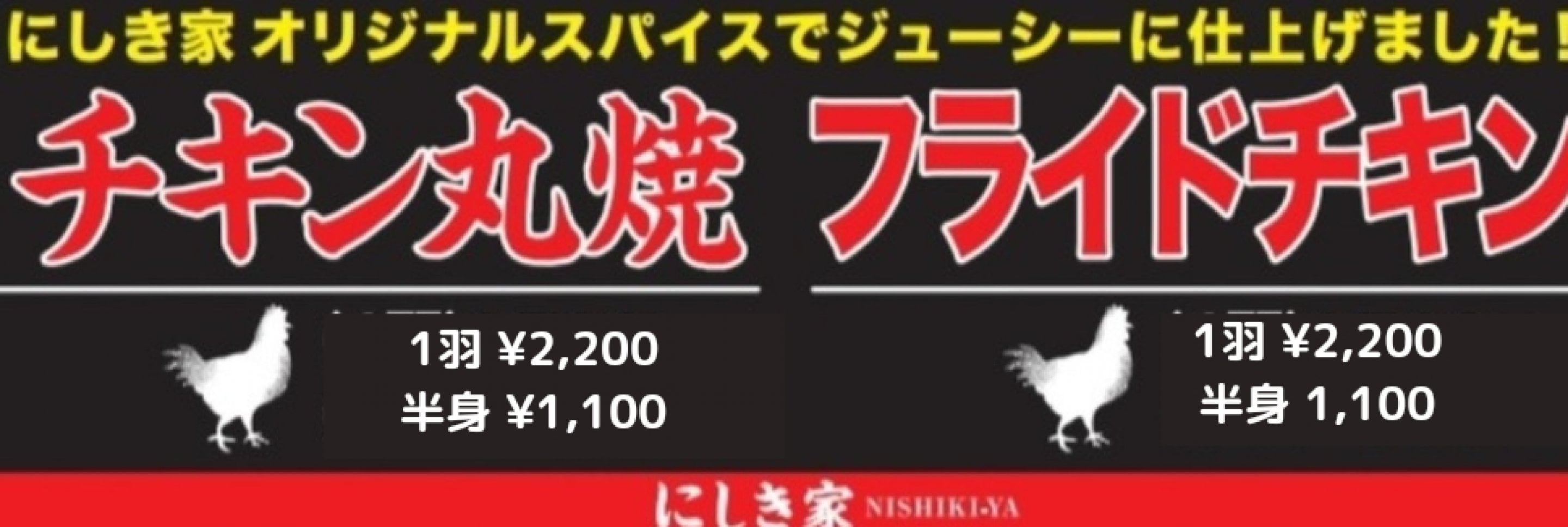 チキン丸焼き「にしき家」では、今後楽しい企画もしていきます♪ メルマガ特典として通常2.200円のチキン丸焼きまたはフライドチキンが2.000円【200円OFF】になります♪ 是非ご登録ください!!