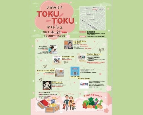 相模原市淵野辺の徳永接骨院さんでは、休診日である日曜日に医院を開放したマルシェを開催されています。2022年12月よりスタートした本試みは、今回で5回目となります。あやくちゃ屋は今回も10:00-15:00で出店し、イベントを盛り上げます。宝探しのように院内の二次元バーコードをさがしてスマホで読み込み、メルマガ登録をすればその場で嬉しいプレゼントが沢山もらえます!ぜひこの機会をご利用ください。