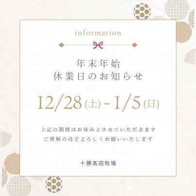 いつも十勝髙田牧場をご利用いただき、誠にありがとうございます。