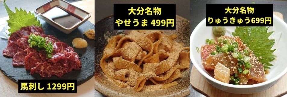 大分名物の「とり天」「やせうま」「りゅうきゅう」や、