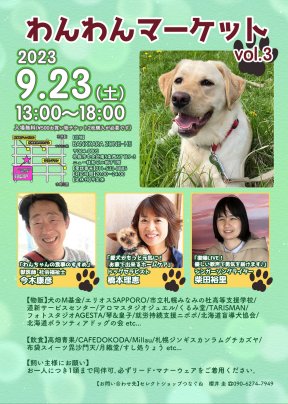 お待たせしました!今年も開催 わんわんマーケットVol.3 2023年9月23日(土)開催 入場チケットの販売を開始しました