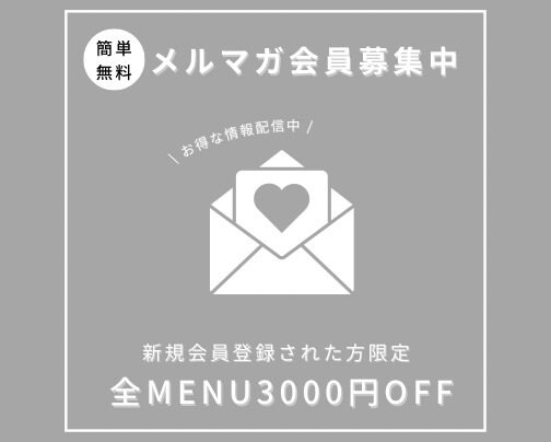 メルマガ登録で初回限定、全メニュー3000円オフ