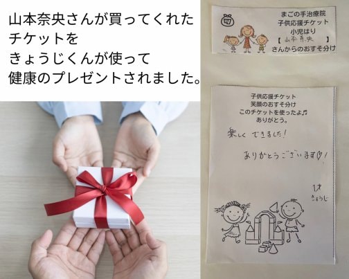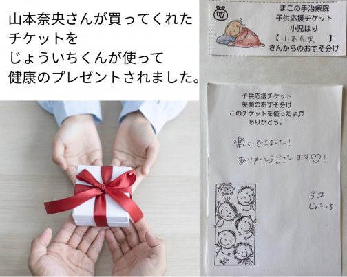山本奈央さんからじょういちくんへ健康のプレゼントされました!