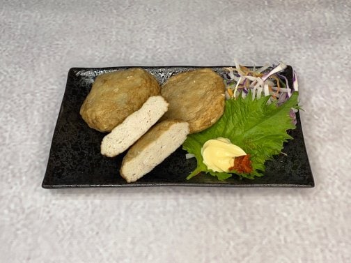 地元で収穫したアジを捌いてすり身にしてのてんぷらは アジなのにシャキシャキ歯ごたえ感が有り良い塩梅でご飯やお酒がすすむ美味しさです!