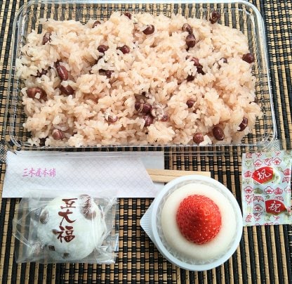 今回は 御赤飯 豆大福 いちご大福をいただきました。
