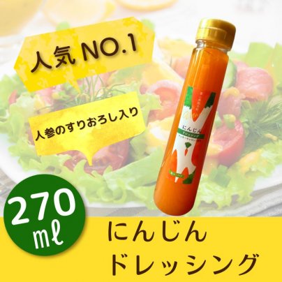 大人気の人参ドレッシングがリニューアルして登場!!細身の美しいシルエット❤持ちやすい、おしゃれな容器とパッケージになりました(#^^#)原価高騰により値段はそのまま、内容量が270㎖となりましたことご了承ください。