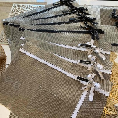 これからクリスマスやお正月で賑やかに食卓を囲むことが増えますので、その食卓をリボンで華やかに彩りたいとの想いでランチョンマット製作いたしました♡