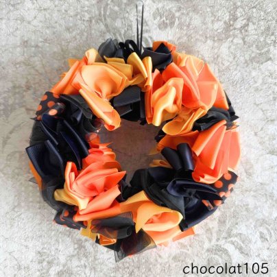 ハロウィンシーズンを盛り上げるインテリアにリボンリースはいかかでしょうか。