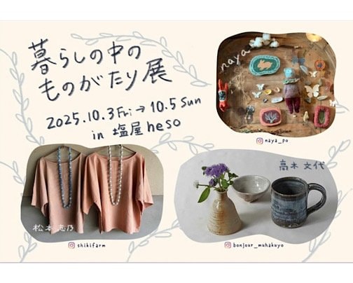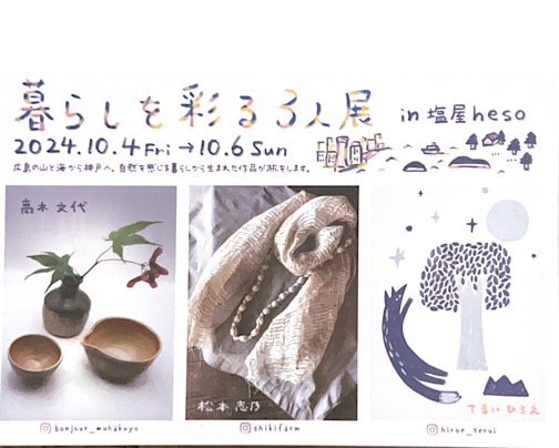 暮らしを彩る3人展in 神戸塩屋heso暮らしを彩る展も4回目となり今回は神戸の塩屋で開催されます!