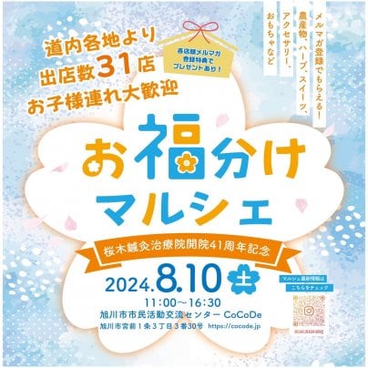 旭川市内にある桜木鍼灸院さん、開院41周年記念イベントに出店させていただきます。