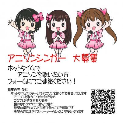 ホットタイムのステージでアニソンを歌う方を募集いたします