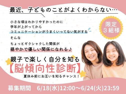 娘の不登校を経験した私が、脳傾向性診断に出会い、同じように悩むお母さんのためにも脳傾向性診断を使って寄り添いたいと立ち上がりました!