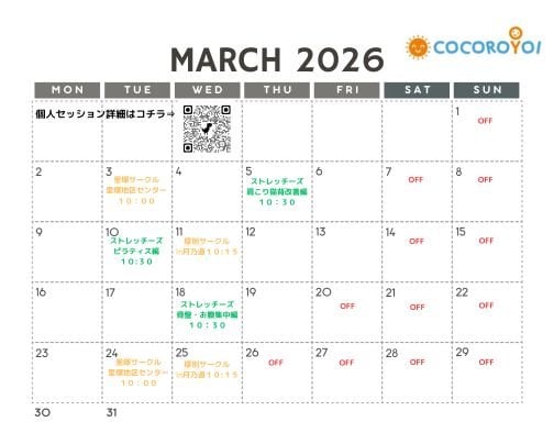 3月のレッスンカレンダーをご案内いたします。