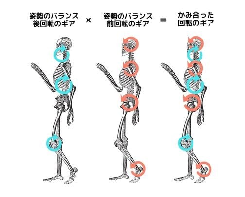 また、このギアが逆回転になってしまうと骨格構造のバランスが崩れていってしまいます。