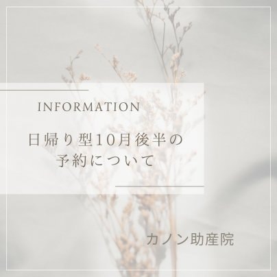 日帰り型10月後半予約開始について