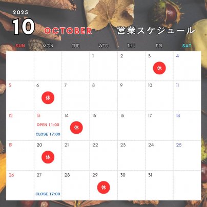 10月の営業スケジュールのお知らせ🍁