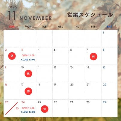 11月の営業スケジュールのお知らせ🍂