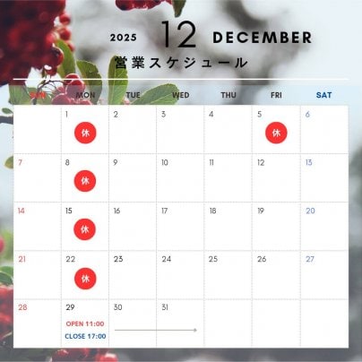 12月の営業スケジュールのお知らせ🎄