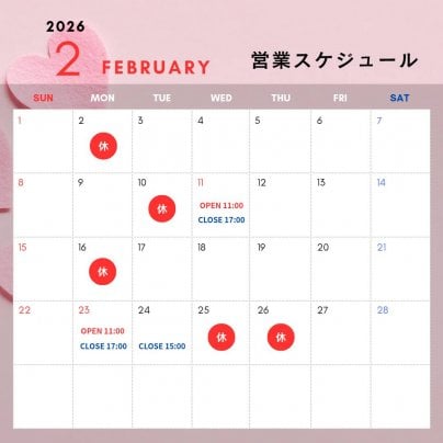 2月の営業スケジュールのお知らせ🍫