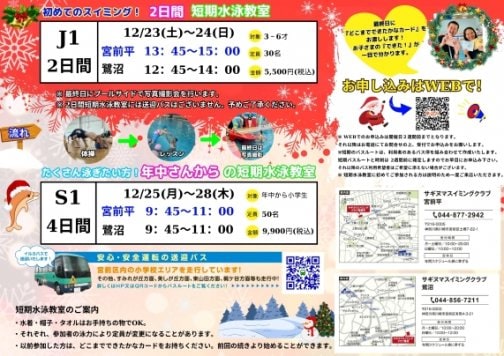 まだ間に合う!冬休み短期水泳教室予約受付中!