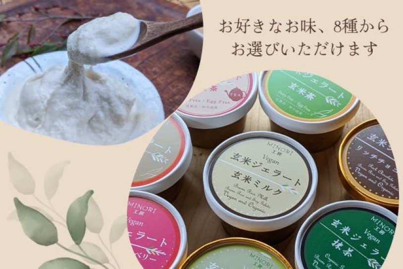 (玄米ミルク、有機抹茶、リッチチョコレート、すだちと山椒、いちごとクランベリー)