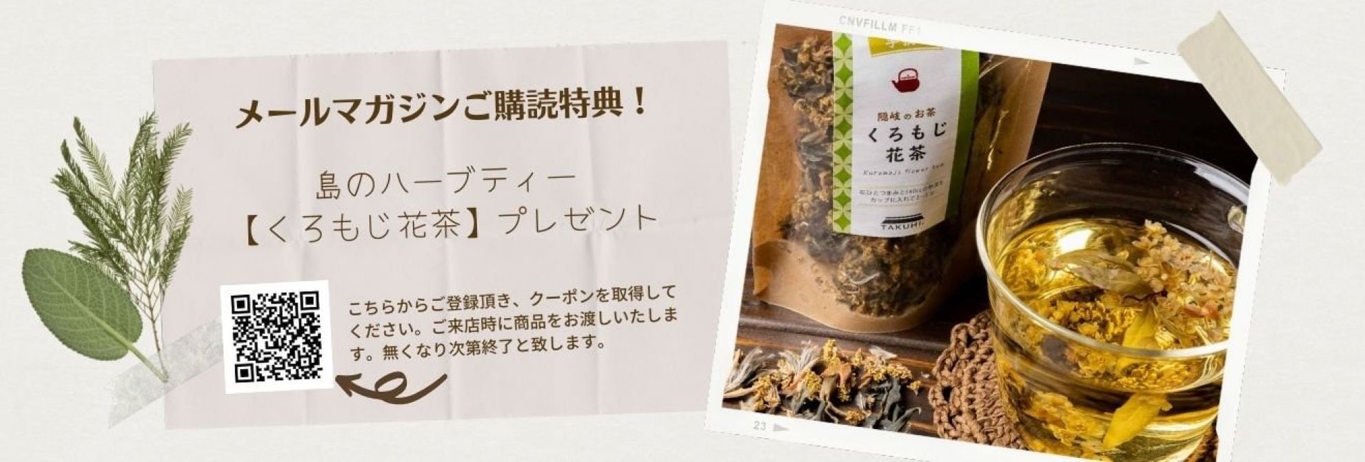 オープンに向け準備中!メルマガ登録記念としてまるどマーケットにてTAKUHI.半額割引もしくは「くろもじ花茶」をご来店時にプレゼントしています。 キャンペーンは商品が無くなり次第終了と致しますので、お早めにご登録→クーポン取得してご来店くださいませ。 今後もイベント・お得な情報等、メールマガジンにて配信いたします。ぜひご登録ください。