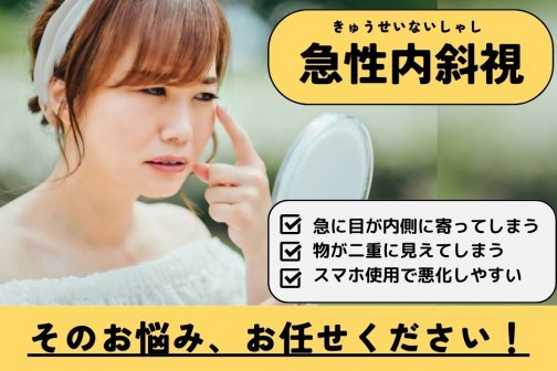 急に目が寄る・二重に見える症状は急性内斜視の可能性。原因はスマホ長時間使用による眼精疲労、自律神経の乱れ、血流低下です。更年期世代はホルモンバランスの影響で目の筋肉が緊張しやすく、ピント不調や視線のズレが起こりやすくなります。
