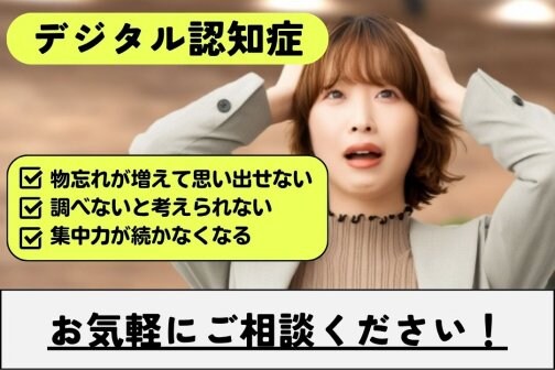 最近物忘れや集中力低下が気になる方はデジタル認知症の可能性。原因はスマホ依存による脳疲労、自律神経の乱れ、睡眠の質低下です。更年期世代はホルモンバランスの影響で回復力が落ちやすく、記憶力低下や思考力低下につながります。