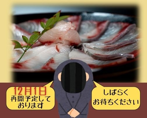 地球温暖化の影響により、【五方熟成ぶり】の原料である鰤(ブリ)の成長が遅れており、現在、販売を見合わせております。お楽しみにしていただいているお客様には、大変ご迷惑をお掛けしておりますが、今年の12月1日には販売を再開できる見込みです。