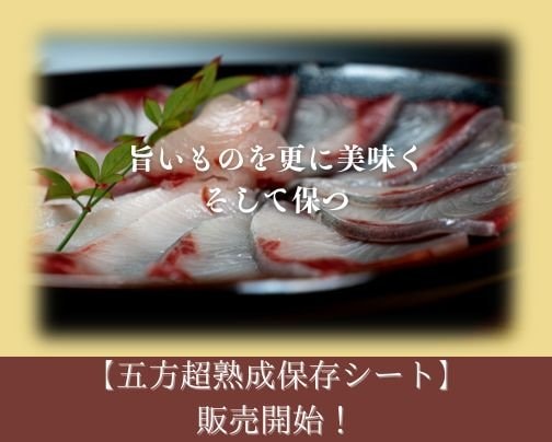 魚に限らず肉、野菜の旨みを引き上げ更に鮮度を長持ちさせる事が出来る。[五方熟成保存シート]が販売開始します。
