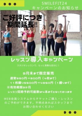 スタジオレッスンを皆さまに体験してもらいたい思いから導入キャンペーン実施しています。