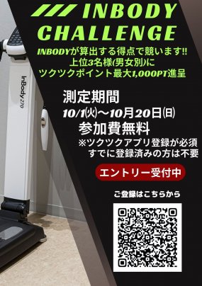 10/1〜10/20までお一人様一回まで無料でINBODYが測定出来ます‼