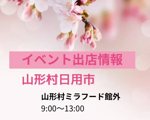 4月6日長野県山形村の『山形村日用市』に出店します。通販ではなかなか販売できないシフォンケーキサンドやカット売りのシフォンケーキ、旬の材料で今しかないケーキやタルト、クッキーやスコーンを販売いたします。よろしくお願いいたします。 …続きを読む
