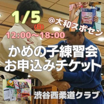 恒例となりました、抽選会付きのかめの子練習会がやってきます!冬休みの思い出作りにも、来年の初稽古にもぜひご活用ください。大好評のお菓子のプレゼントもありますので、お誘いあわせの上ご参加ください。道場の先生の同意をいただいた上で、チケットの事前購入をお願いします。