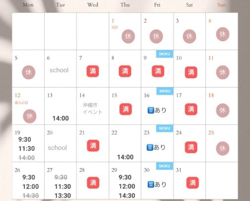 サロン/1月空き情報
