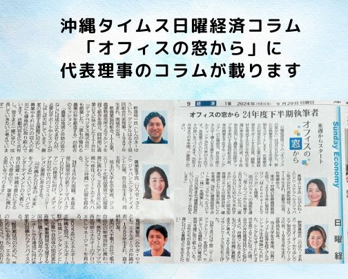 沖縄タイムス日曜経済面「オフィスの窓から」に代表理事新垣のコラムが掲載されます!