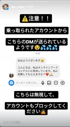 DMにて‘オンラインフードコンテストに参加しています。私に投票してくれませんか?’とのメッセージが届いたとの報告を多数いただいております。