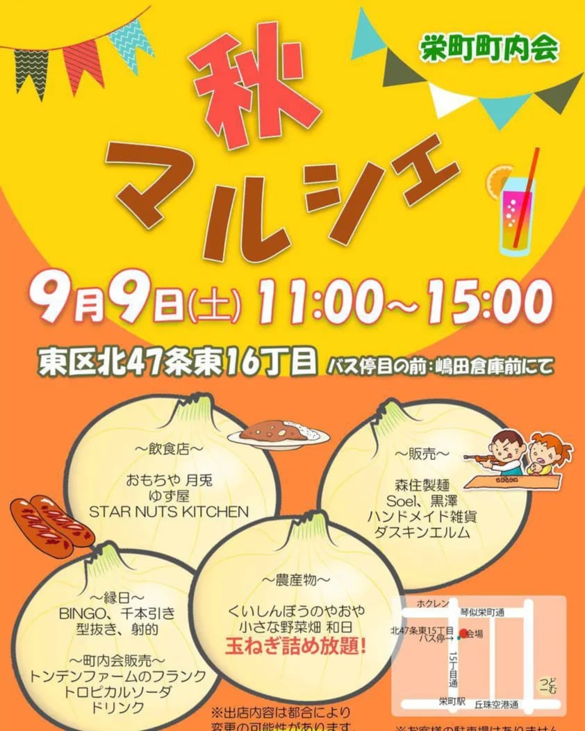 こんにちは!9月9日(土)、栄町町内会 秋マルシェに出店いたします。
